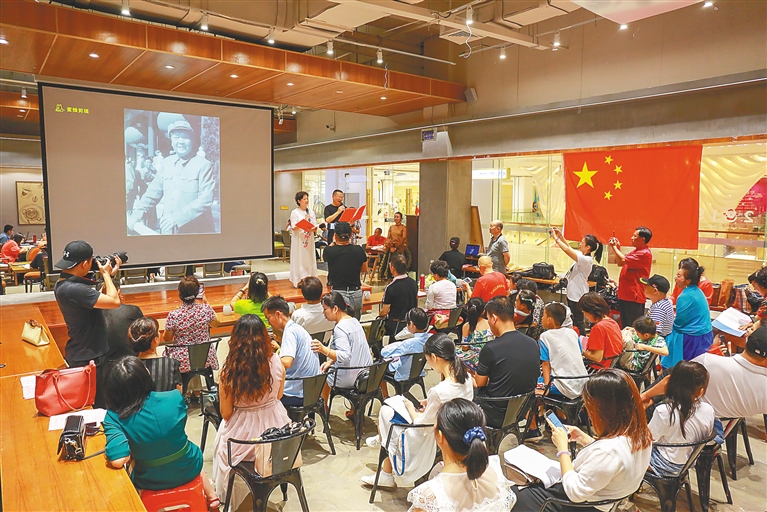 10月3日,国庆“毛泽东诗词”诵读会在海口市日月广场知和行书局举行,参加者诵读了十余首毛泽东诗词。 见习记者 李天平 摄