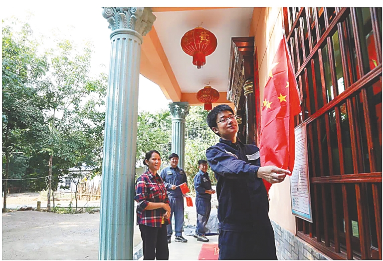 “珍丽,新房挂上国旗真喜庆啊!”10月3日,白沙黎族自治县打安镇南达村驻村第一书记郑德怀刚一走进院落,42岁的村民李珍丽迎了出来,开心地说:“这么多年了,我们还是第一次在新房子里庆国庆,党的扶贫政策好呀!”