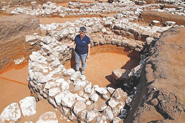 这是10月6日在以色列中部城市哈里什附近拍摄的考古现场。 以色列文物管理局6日宣布,该国考古学家在中部城市哈里什附近发现一处有约5000年历史的迦南城市遗址,有助于了解当时的城市化进程。 新华社/法新