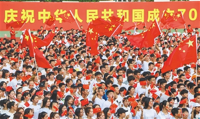 9月27日,三亚学院5000余名新生在开学典礼上喜迎国庆。