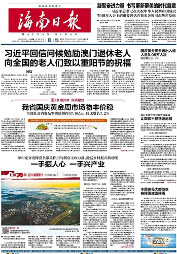 海南日报 头版 001 2019-10-081 2019年10月08日 星期二