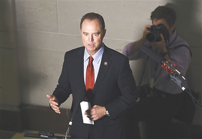 10月8日,在美国华盛顿,众议院情报委员会主席希夫对媒体讲话。