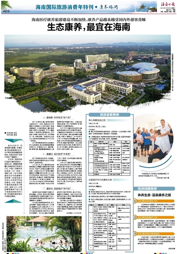 近年来,海南积极打造医疗康养旅游这一旅游业态。随着海南博鳌乐城国际医疗旅游先行区、中国人民解放军总医院 (301 医院 ) 海南分院、三亚中医院国际友好中医康复疗养院等一批具有国内先进水平的医疗机构的建成、升级,海南医疗康养旅游建设不断加快,温泉SPA、中医按摩等康养产品已成为海南旅游新的吸引物,受到越来越多国内外游客的青睐。