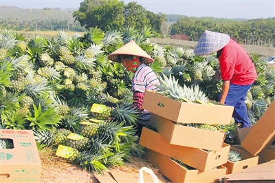 苦心投入终得收获。“金菠萝亩产6000斤左右,3.2斤1个的大果就有10多万斤。”龚春勋说,这次试种成功,将改变全村菠萝种植结构,“下一步将把村内的菠萝地分片区,分季节种植,实现每个月都有菠萝采摘上市,避开集中上市的风险。”