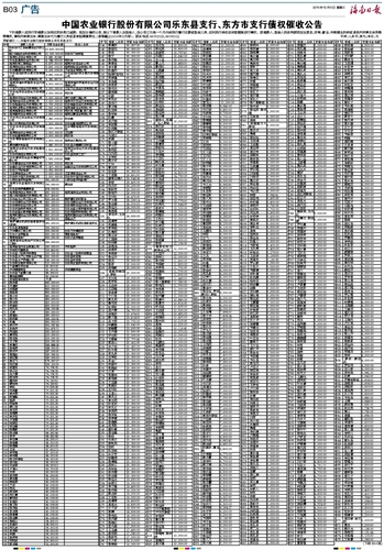 中国农业银行股份有限公司乐东县支行、东方市支行债权催收公告