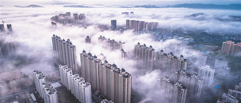 10月8日清晨,儋州市那大镇城北新区的高层建筑物云雾缭绕,若隐若现,宛如人间仙境,美不胜收。