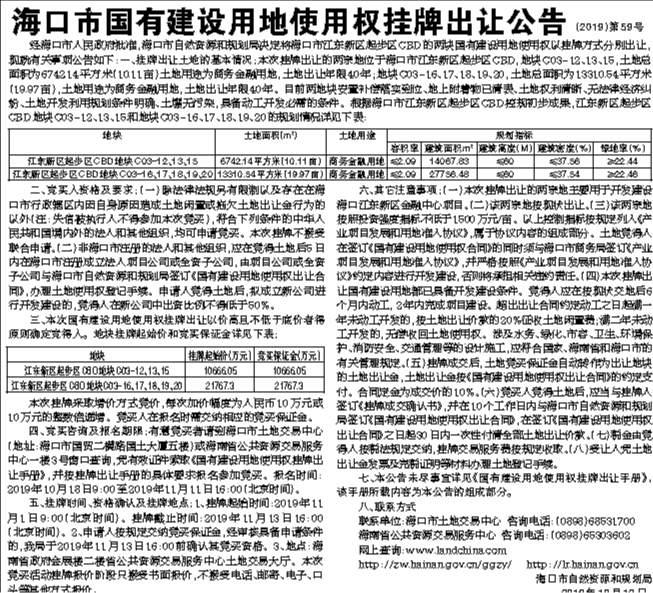 关于琼海市嘉积城北片区控制性详细规划地块C-01-01局部用地规划条件修改的公示