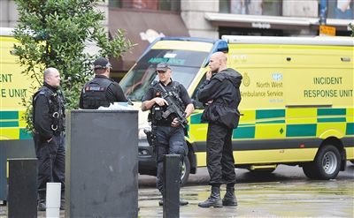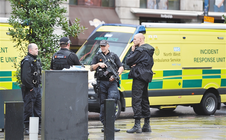 当日,英国曼彻斯特一家商场附近发生持刀伤人案件,造成5人受伤。伤者已被送往医院接受治疗,一名嫌疑人在案发现场被警方逮捕。 新华社/路透