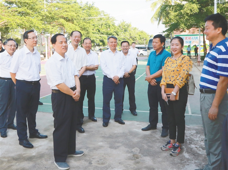 刘赐贵强调,要把背水一战高质量打赢脱贫攻坚战作为树牢“四个意识”、坚定“四个自信”、做到“两个维护”的现实检验,正视和解决好工作中存在的问题,决不可麻痹大意,真正做到心中有数,紧扣工作时限,确保精准脱贫,有效提高群众满意度。要把每个农村基层党组织都打造成为坚强的战斗堡垒,带领群众抓好产业振兴、社会文明、邻里和睦等各方面工作,共同致富奔小康,村“两委”干部要带头做起,引导教育村民讲文明爱卫生,久久为功营造良好的农村人居环境。各级党委要一级抓一级,全面加强党的建设,全面从严治党,严守廉洁底线,确保风清气正。定安县要自觉站在全省大局上想问题办事情,主动融入“全省一盘棋、全岛同城化”,一茬接一茬苦干实干,创造经得起历史、实践和人民检验的新业绩。