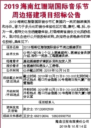 2019海南红珊瑚国际音乐节周边搭建项目招标公告