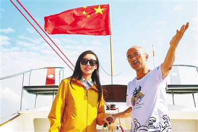“把国旗挂在船帆上部是航海礼仪中对国家的崇高致敬。” 65岁的邝向荣精瘦而黝黑,笑容灿烂。