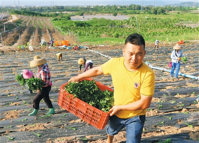 10月13日下午,海垦南繁产业集团东升队的职工正在紧张地把辣椒苗搬到大田栽种。据悉,今年该集团冬季瓜菜主要品种有豇豆、苦瓜、辣椒、茄子、青瓜等,预计种植面积达7000多亩。