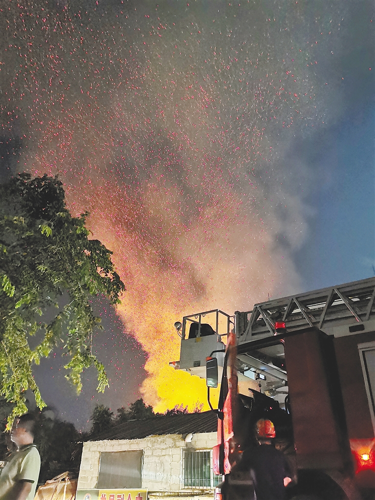在接到报警后,海口消防随即调派琼山、国兴、金盘、桂林洋、白龙中队、特勤一中队以及特勤二中队、保障大队共18辆消防车、86名消防队员赶往现场。截至记者发稿时,火情仍在处置当中。