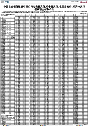 中国农业银行股份有限公司定安县支行,琼中县支行,屯昌县支行、琼海市支行债权联合催收公告