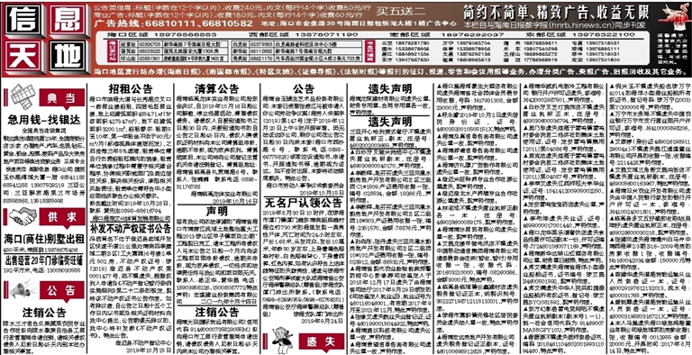 海南华生拍卖有限公司拍卖公告(第191016 期)