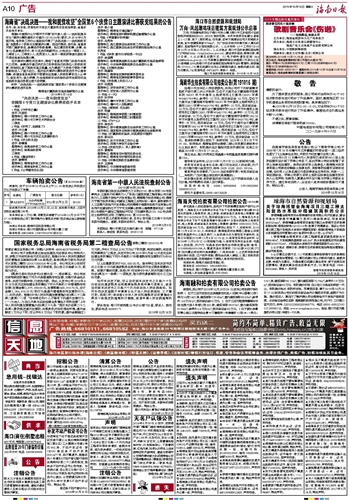 海南日报 广告 010 2019-10-161 2019年10月16日 星期三