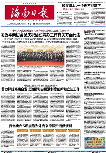 海南日报 头版 001 2019-10-171 2019年10月17日 星期四