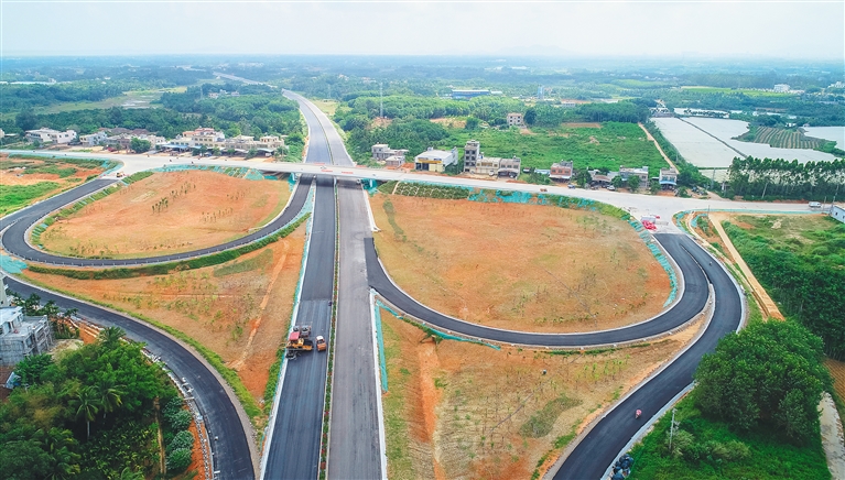10月18日,俯瞰万洋高速万宁后安枢纽连接线施工现场。目前,万洋高速公路全线各标段路面施工已进入尾声,并陆续进入后期的交通安全和机电工程安装阶段。该高速路将于今年底全线开通。