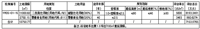 (一)挂牌出让宗地基本情况:本次挂牌出让宗地位于三亚崖州湾科技城控规YK05-01-15地块,CGCS2000国家大地坐标系总面积13750.77平方米(海南平面坐标系总面积13739.22平方米)。用地四至及界址坐标详见地块勘测定界图。该宗地规划用地性质为二类居住混合零售商业用地(用地代码:R2/B11)。其中,二类居住用地占80%,CGCS2000国家大地坐标系面积11000.62平方米(海南平面坐标系面积10991.38平方米);零售商业用地占20%,CGCS2000国家大地坐标系面积为2750.15平方米(海南平面坐标系面积2747.84平方米)。2019年3月13日,三亚市人民政府以《关于崖州区科技城控规YK04-04-01-01等地块及道路共约837亩用地具备净地出让条件的证明》证明控规YK05-01-15地块土地征收及“两公告一登记”工作已完成。三亚市崖州区人民政府已与被征地单位签订了《征用土地补偿协议书》,土地补偿款、安置补助费、青苗补偿费和地上附着物等款项已支付到位,相关征地材料现存于崖州区人民政府。目前地块上的附着物已清表、无法律经济纠纷、土地开发利用规划条件明确、符合土壤环境质量要求。地块周边可以满足施工建设所需的水、电供应,相关设备、机械可以进场施工。该宗地具备净地出让的条件。该宗地概况及规划指标等情况详见下表: