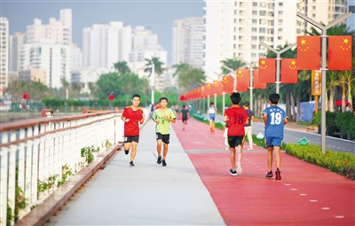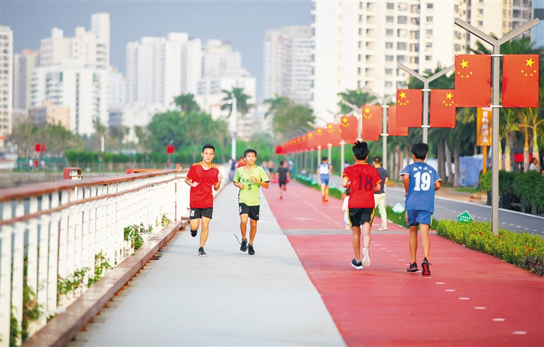 10月17日,海口湾畅通工程一期示范段建成后,众多椰城市民游客前来休闲健跑。本报记者 张茂 摄