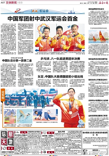 海南日报 文体新闻综合 007 2019-10-201 2019年10月20日 星期日