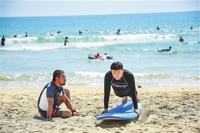 今年国庆黄金周,冲浪、帆船等运动项目逐渐成为在琼游客的度假新选择。在万宁日月湾,许多游客在冲浪教练的一对一指导下,在沙滩上练习划水、上板、起身、站姿等关键动作;在三亚半山半岛帆船港和海口国家帆船基地,人们扬帆起航、劈波斩浪,近距离感受大海的魅力……