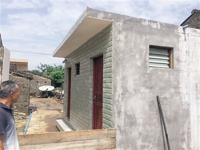 从村委会办公室出来,王智孙带着海南日报记者参观村里农户的厕所。第一户是村民王雄才家,他家的老瓦房墙体是石头砌的,有30多年了。在老瓦房的后面,矗立着今年6月才建成的一栋崭新的卫生间,分成两部分,一间是专门的洗澡间,挂着热水器,一间是设有冲水马桶的厕所。