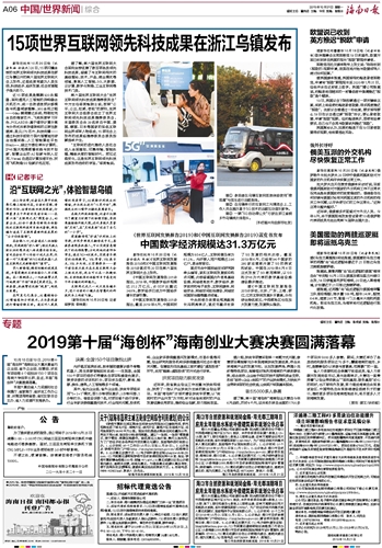海南日报 中国/世界新闻综合 006 2019-10-211 2019年10月21日 星期一