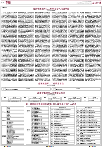 第十届海南省双拥模范城(县、区)、模范单位和个人名单