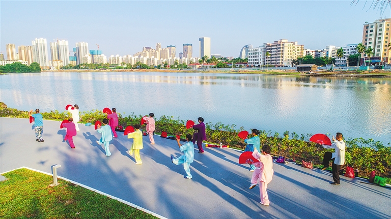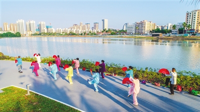 近年来,海口坚持以人民为中心的发展思想,加快城市更新步伐,着力增绿护蓝,海口城市公园品质不断提升。红城湖公园南岸的开园实现了还岸于民,进一步提升了城市品位,让椰城市民享有更多的获得感和幸福感。 本报记者 张茂 摄