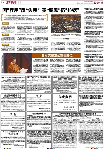 海南日报 世界新闻综合 010 2019-10-231 2019年10月23日 星期三