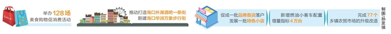明年,我省促进消费项目涉及免税购物、美食消费、家电消费、汽车消费等领域,包括举办第二届“免税购物嘉年华”活动;开展第二届全省“美食购物嘉年华”活动;引进24小时便利店,全省开店超过100家,其中海口开店60家、三亚开店30家,儋州、琼海、文昌等重点市县开店10家;完成打造海口外滩酒吧一条街,改造提升海口华润万象步行街、白龙北路、海口骑楼老街、三亚解放路等步行街;促成新落户全国性和区域性的品牌店、旗舰店、体验店等各类品牌首店超过20个,发展特色小店50个;各市县至少打造完成1个成熟经营夜市等方面。