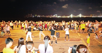“我们每天晚上都会到这里散散步。”吴婷婷说,“自从外滩的漫步道、跑步道、骑行道建成后,这里变得越来越漂亮,每天都有很多市民游客来这里打卡。”