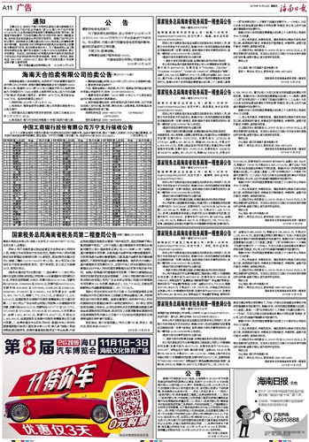 海南日报 广告 011 2019-10-241 2019年10月24日 星期四