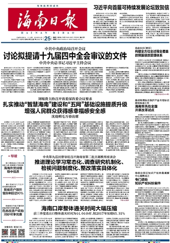 海南日报 头版 001 2019-10-251 2019年10月25日 星期五