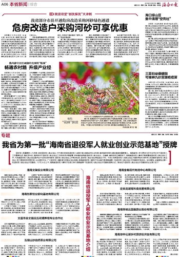 我省为第一批“海南省退役军人就业创业示范基地”授牌