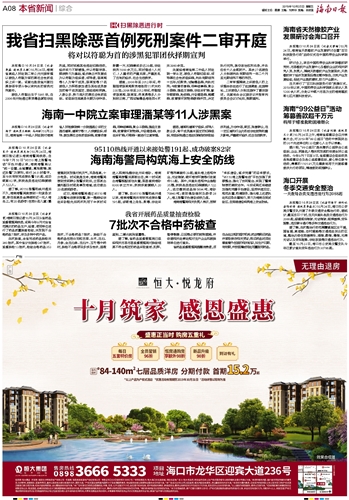 海南日报报业集团旗下媒体: 海南日报 |南国都市报 |南海网 |南岛晚报 |证券导报 |法制时报 |海南农垦报 设为首页