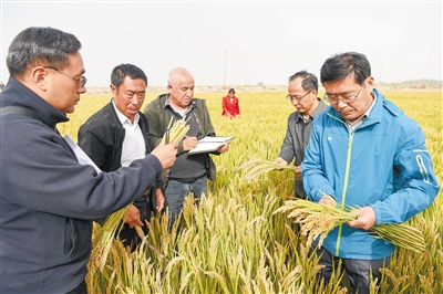 本次测产由山东泰安援疆指挥部、岳普湖县人民政府组织山东省农业科学院、青岛海水稻研究发展中心、喀什地区农业农村局等单位专家实施。测产田块位于新疆喀什地区岳普湖县巴依阿瓦提乡阿热盖买村,紧邻塔克拉玛干沙漠西缘,试种地块含盐度高达17‰左右,pH酸碱度超过8.0,属重度盐碱土地。