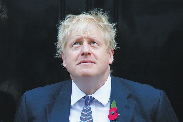 10月28日,在英国伦敦,英国首相鲍里斯·约翰逊在唐宁街10号首相府外出席活动。