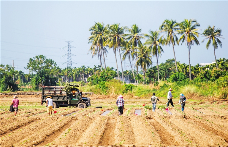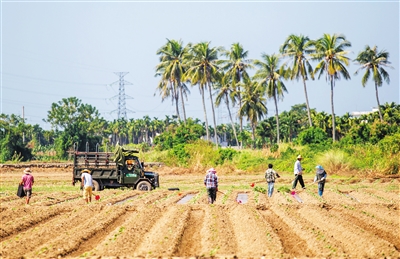 据介绍,崖州区每年收购北调的瓜菜达26万吨以上,占海南瓜菜出岛总量近1/10,是琼南最大的瓜菜集散中心,也是海南最大的瓜菜生产基地之一。今冬明春计划种植冬季瓜菜面积6.7万亩,当前已种植面积2.696万亩。 本报记者 武威 摄