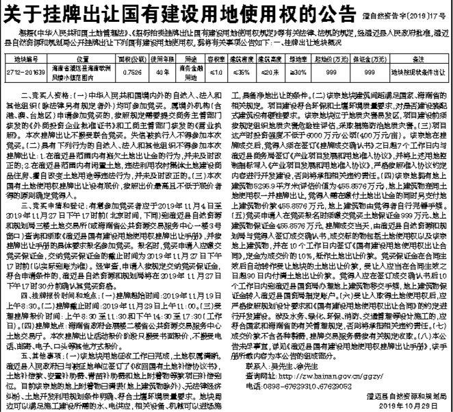 关于挂牌出让国有建设用地使用权的公告