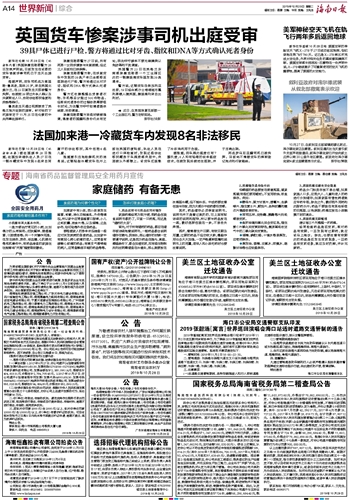 海南日报 世界新闻综合 014 2019-10-291 2019年10月29日 星期二