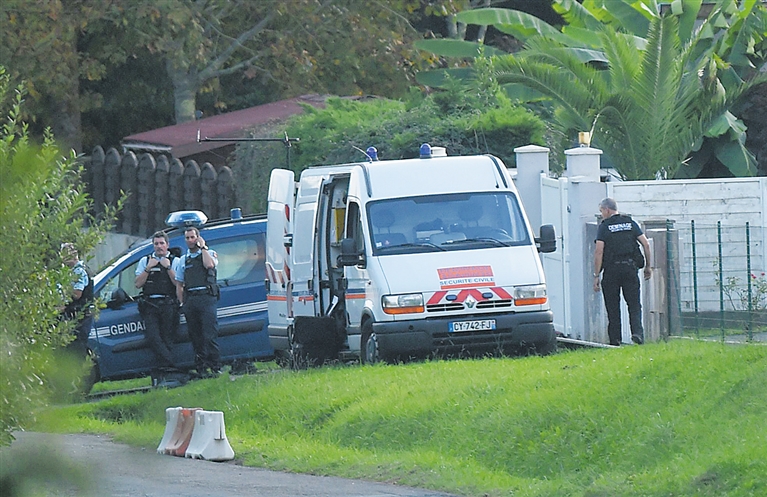 10月28日,在法国西南部的圣马丹-德塞尼昂,警方在嫌疑人住所附近展开行动。