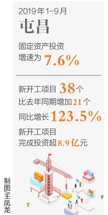2019年1月至9月,屯昌县新开工项目38个,比去年同期增加21个,同比增长123.5%,产业聚集初现雏形。