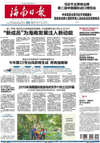 海南日报 头版 001 2019-10-301 2019年10月30日 星期三