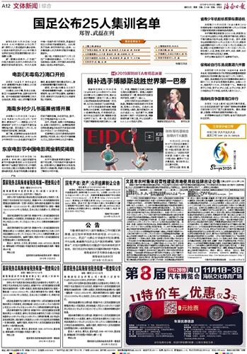 海南日报 文体新闻综合 012 2019-10-301 2019年10月30日 星期三