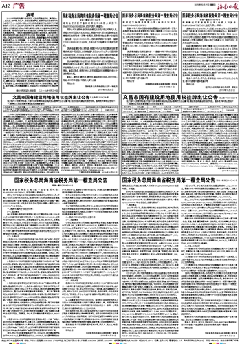 海南日报 广告 012 2019-10-311 2019年10月31日 星期四