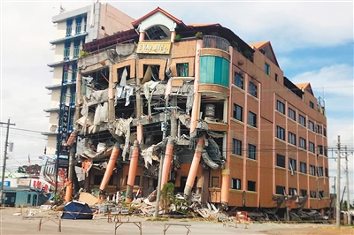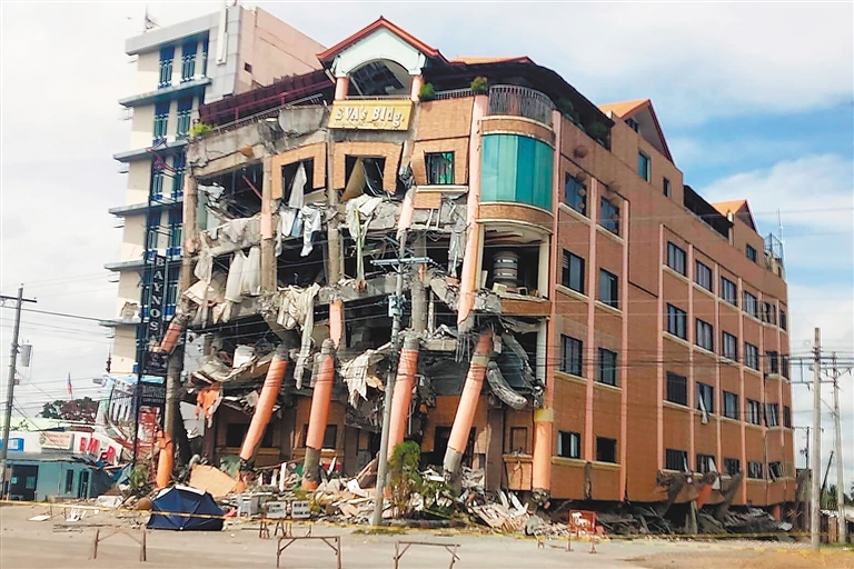10月31日,在菲律宾南部棉兰老岛基达帕万,一幢建筑物在地震中受损。