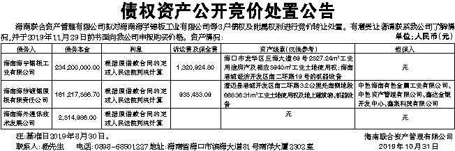 债权资产公开竞价处置公告