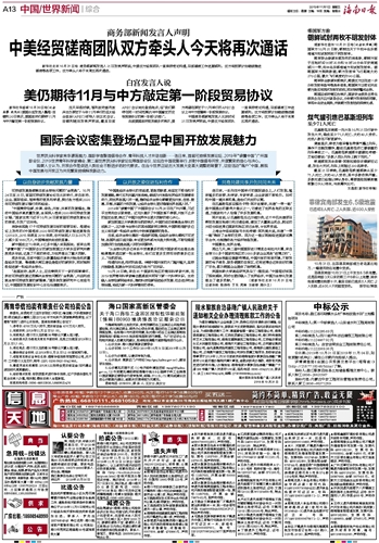 海南日报 中国/世界新闻综合 013 2019-11-011 2019年11月01日 星期五